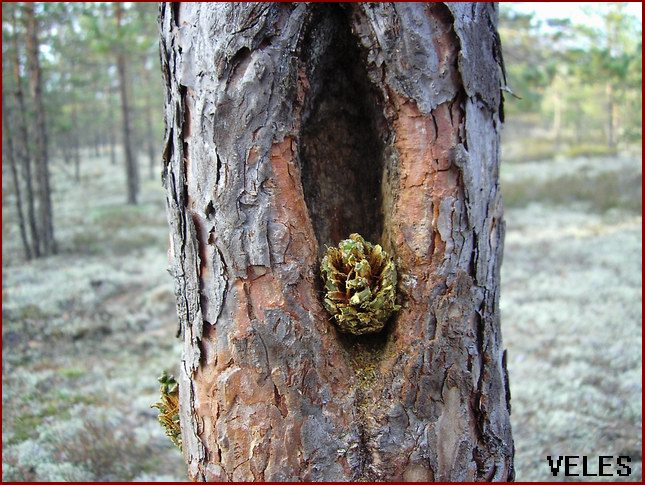 А в местах закрепления шишек,