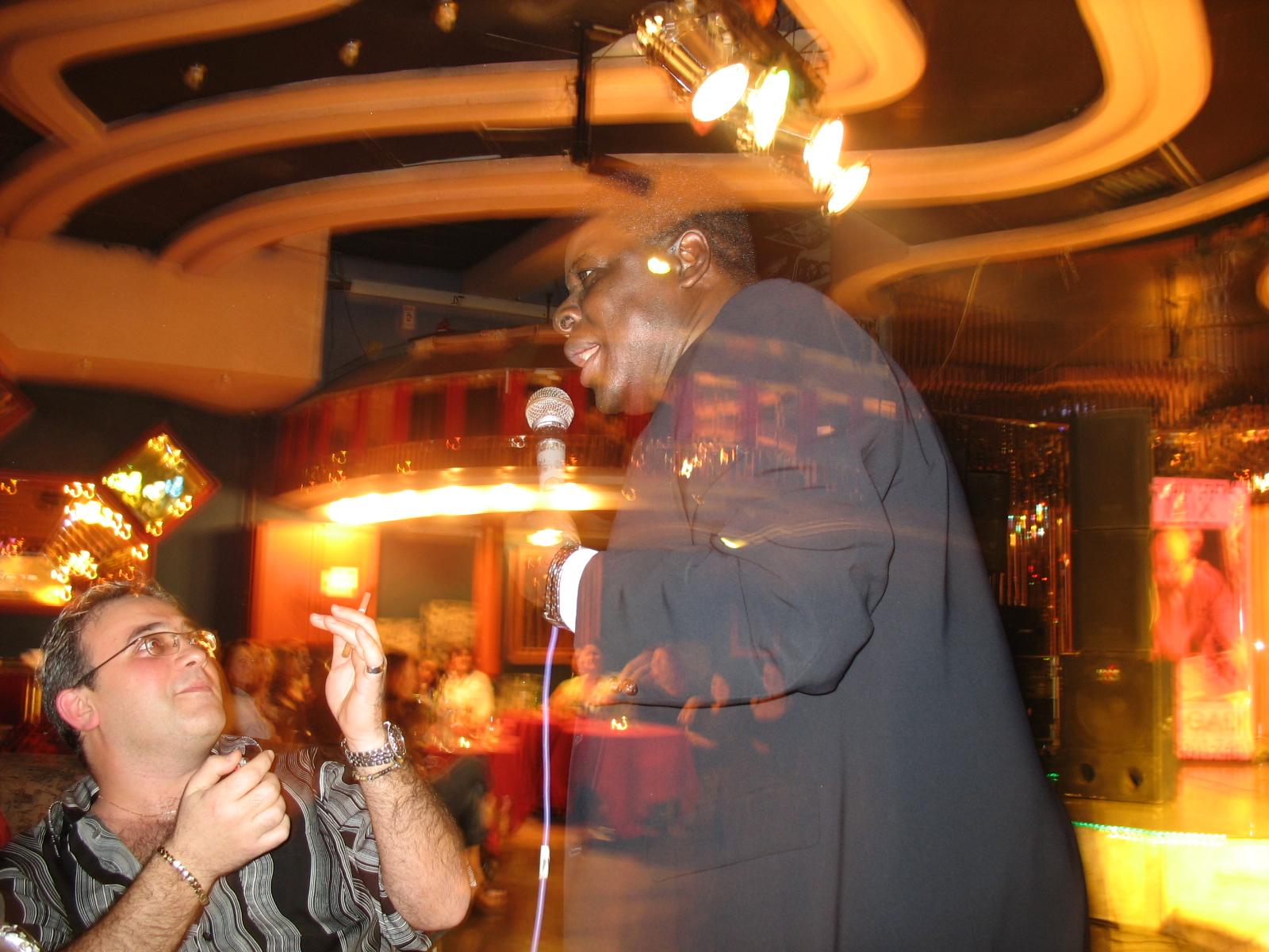 а пел блюз какой-то , меня и понесло ему подпевать - вот и засняли меня в такой позиции .....