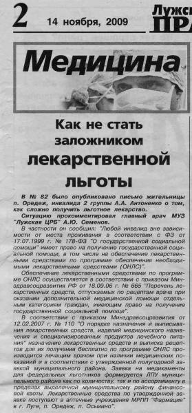 Газета "Лужская прaвда" № 91 (16126) от 14 ноября 2009 года: |