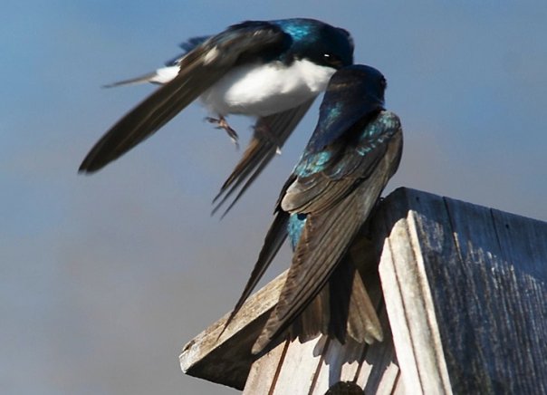 рассказ жены фотографа: "птиц получился несколько нерезко, потому что этот летучий отбойный молоток ведь ни секунды спокойно не сидит, а строчит почище любого пулемета. в длину он, кстати, примерно с полметра будет. маленькая такая птичка, хорошая... долго позировать он, правда, не пожелал, улетел, плавно помахивая крыльями. вернувшись же на паркинг обнаружили, что дятел тут как тут и его снимают какие-то два посторонних мужика. правда, съемка продолжалась недолго, птиц снова улетел, а мужики сообщили, что незадолго перед тем этот дикий звэр атаковал нашу машину (!). оказывается, он увидел свое отражение в капоте, сдуру не сообразил, что это он сам, и начал яростно прогонять чужака со своей территории. спасибо, дырок не оставил, а ведь мог, у него клюв весьма неслабый..." |