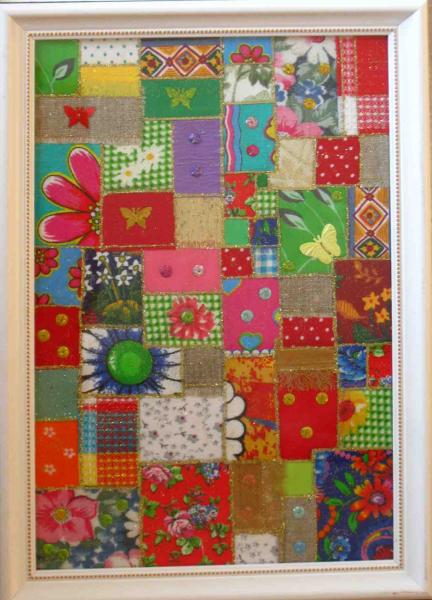 я там купила картинку из лоскутков, которая называется «мелодия весны». вроде ничего особенного, но такой притягательный позитивчик.