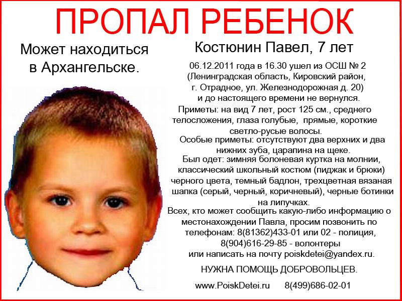 Координатор на месте 10 декабря Дмитрий 8-911-246-68-27 Инфо координатора на месте 10 декабря 8-904-616-29-85 (по вопросам хода поисков) http://vkontakte.ru/poiskdetei_pavel Телефоны: 02: полиция 8 81362 433-01: блиц-инфо о местонахождении ребенка 8 904 616 2985: волонтеры poiskdetei@yandex.ru poiskdetei.ru 8 499 686 0201 Тема на форуме ПоискДетей.ру: http://poiskdetei.ru/forums/index.ph...n-pavel-7-let/ Последний раз редактировалось Sosed; 10.12.2011 в 15:38. |