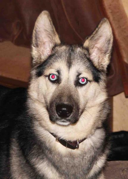 2 января в Зажелезнодорожной части Луги найдена сука, метис хаски и овчарки. Размером с хаски, окрас овчарки, глаза голубые. В ошейнике. Молодая, робкая, игривая, ласковая, зубы белые.