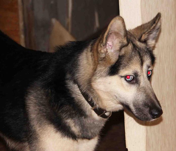 2 января в Зажелезнодорожной части Луги найдена сука, метис хаски и овчарки. Размером с хаски, окрас овчарки, глаза голубые. В ошейнике. Молодая, робкая, игривая, ласковая, зубы белые.