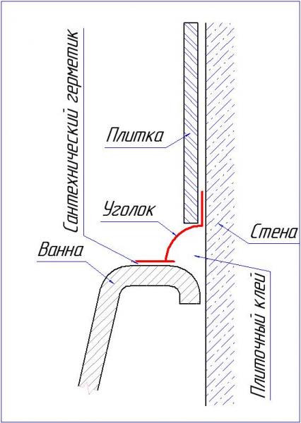 я себе вот так сделал:... много лет уже прошло,и я конечно не спец по плитке...уголок сделан плиткой как видите,и нормально,нигде не протекает.