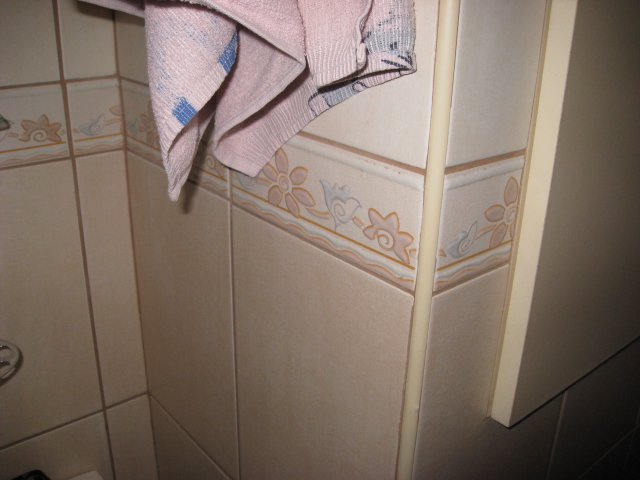 вот и у меня так сделано, только ты клал под углом половинку плитки, а у меня целая так поставлена. очень удобно, и точно нигде не течет