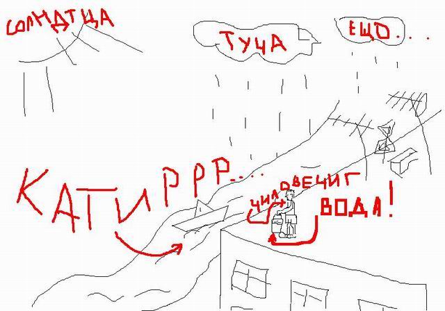 Короче,с той крыши я нашла три фоты,где есть вода,но её там немного.Чё выложить-не знаю...Там,где катерочек-крыши почти нет...