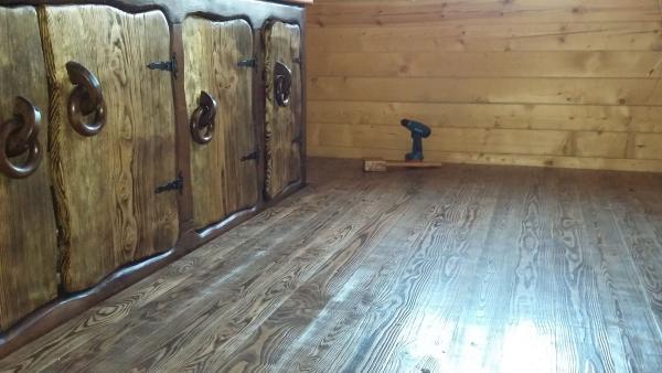 Мекбель и пол из искусственно состаренной древесины