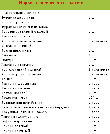 Нормы вещевого довольствия и общевойскового пайка