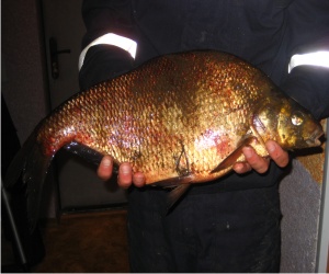 лещ- 2 кг. пойман в реке луге где-то в середине мая