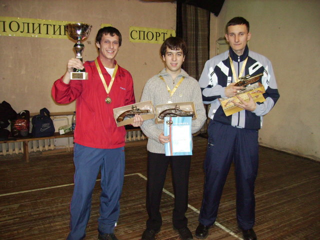 Хотелось бы, что бы в этих соревнованиях приняли участие команды школ и предприятий и поборолись бы за спортивную честь своих коллективов. Победители будут награждены призами и подарками. На фото победители командного первенства г. Луги-2006: Савинов Александр, Петров Андрей, Рохлин Сергей (команда "Орлан"). |