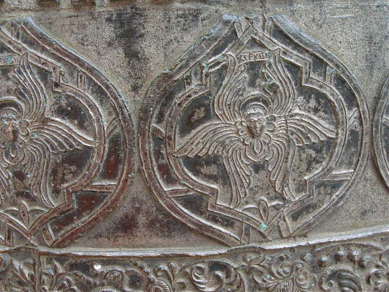 вот он - папиллярный узор древнего мастера. таких отпечатков пальцев на колоколе много.