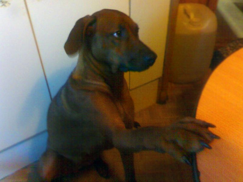 лорка весь день в окно высматривает кота который повадился к нам на участок ходить как тока видит его начинает задними лапами забираться на спинку дивана скулить и лаять на него в окно все стекло в слюнях и соплях уже выскакивает с разбега на улицу и гонит его на соседский забор тот не знаю как но взлетает на 1.5м вверх идет по тоненькому забору а эта сюка скачет на 1.5 м вверх скоро уже натреннируется и бац нет кота он гаденыш каждый вечер приходит наверно к бетьке(нашей кошке) он в марте прошлого года привел товарища и они тут вместе орали под окном |