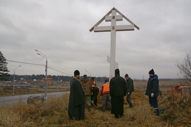 Погуглил... В общем, поклонные кресты это называется. И по Ленобласти их уже немало понаставлено. Но под Москвою-то посолиднее будет (см. фото 1). Но не всем это нравится, как вот например в Брянске. Да и разрешений никто не давал: Заместитель губернатора Вячеслав Папян заявил, что крест был установлен с разрешения городских властей. Глава Брянской городской администрации Дмитрий Шапотько заявил, что никакого разрешения не давал, а глава города Иван Тарусов узнал об установке креста вообще от журналистов, которые пришли к нему за комментариями. А в МИФИ установка такого креста в посмешищще превратили (смотри сразу часть4). Фото 2.