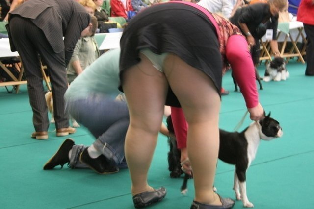 На одной из региональных выставок девочка из ринговой бригады позвала на сравнение владельца кобеля бультерьера с белой отметиной на крупе: "Мужчина с белым пятнышком на ж*пке!" Причем в микрофон. Под общий смех владелец (как оказалось, новичок), прежде чем выйти, долго крутился на одном месте, смущенно пытаясь оглядеть брюки сзади и стряхнуть несуществующее "пятнышко".