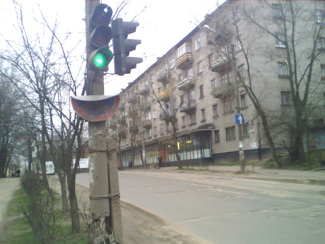 Еще oдна картинка нашего городка. Отсутствует знак, осталась только рамка. Перекресток пр.Урицкого и пер. Толмачева.