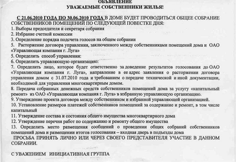 у нас на подъездах объявление о собрании жильцов. на повестке дня смена управляющей компании