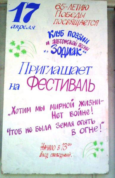 25 января в малом зале городского дома культуры состоялся традиционный концерт клуба авторской песни «зодиак»… это фраза – ложь. то, что состоялось 25 января в малом зале, можно назвать по-разному, но только не концертом клуба авторской песни. мне горько писать эти строки, я оплакиваю клуб, как старого друга.