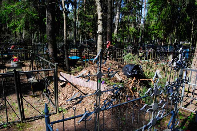 на кладбище среди могил.. люди - быдло сделали свалку.. им было лень пройти буквально пару десятков метров и выкинуть, куда это делают все!