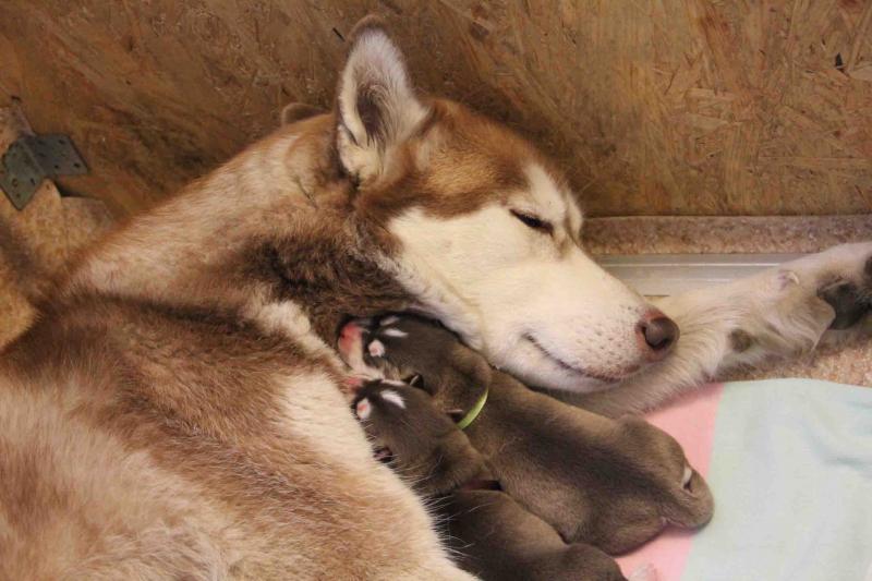 у нас родились щенки, 5 шоколадок. 1 кобель и 4 девицы