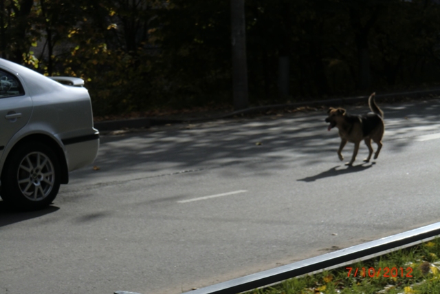 Собака на дороге.
