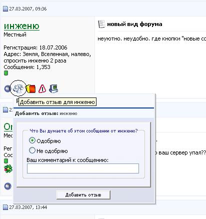 Выпажать одобрение/не одобрение можно кликнув по весам под ником форумчанина - там откроется не большое меню. |