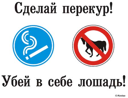 русское радио:" одна сигарета выкуренная на лошади и весь оставшийся путь идешь пешком".( не дословно).