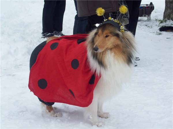 ох, волнуется же мама, что такое - не пойму!? так, наверно, новобранцев провожают на войну... дали слопать полтеленка, сшили новый сарафан. эх, поспать бы, поваляться. брюхо словно барабан. а меня весь вечер моют, весь шампунь перевели. не иначе - на смотрины... на машине повезли!?... шум и гам, собак три сотни, тесно, нечем подышать. уговаривает мама: соня, надо подождать! вон и бонька подвывает - повязали по рукам. не пускают. что за люди? пообщаться надо нам. вот стоит чужая тетя, зубы ищет, смотрит в рот. эх! не нравится мне это. спрячусь. может не найдет? а эксперт не отпускает, уши, ноги покажи. что за просьбы: пробегите, хвостиком пошевели? уф! ну, вроде отпустили, даже вывели гулять. фу, ты! снова потащили. что еще им показать!? все шумят, галдят, целуют, лапу норовят пожать. видно все же победила, аж медаль хотели дать! надоели все до жути! мне домой бы добежать, раскопать сугроб последний, полсардельки дожевать. поваляться бы в постели, попу в лужу обмакнуть, слопать мамины запасы, со двора бы умыкнуть. мама только что-то тянет, не торопится домой, то погладит, то целует... все таскает за собой. эх! не зря здесь проторчали! оценили - хоть куда. чемпионкою я стала. аж россии - вот те на!... |