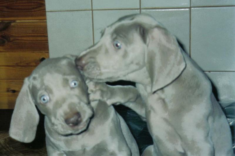 хаски - не единственная порода, у которой бывают голубые глаза. щенки вейнмаранеров (вейнмарской легавой) тоже голубоглазые. но когда они вырастают, глаза становятся желтыми
