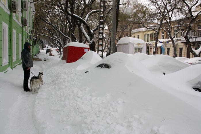 прикиньте, это сегодняшнее фото из одессы. сугробы - это машины
