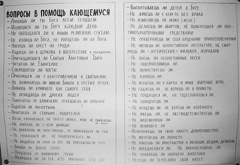 а это висит в часовне в осьмино. я долго искала хоть один пункт, по которому я не грешна. парочку нашла.