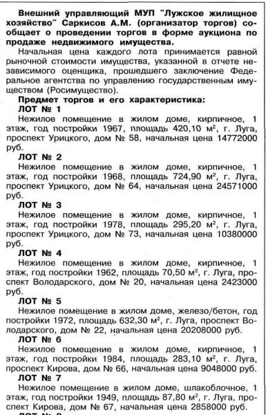 все это незаконно, так как арендаторы исправно оплачивающие арендную плату более 3 лет имеют право первыми выкупить помещение. а их даже не уведомили. и таких арендаторов очень много. так что письмо в суд и в высшие инстанции уже написаны. надо бороться с этой шайкой лейкой. а то весь город скоро профукаем.