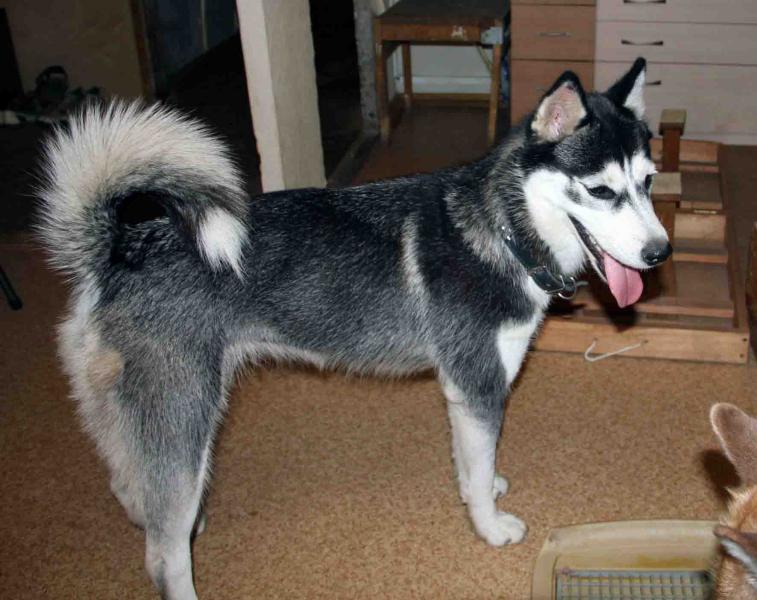 Сука молодая, от полугода до года, лайкоидная. Ну шерсть не 4-5, покороче. Рост скорее 40-45, чуть мельче хасок.