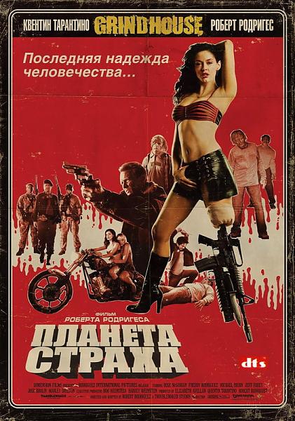 Название: Планета страха Оригинальное название: Planet Terror Год выхода: 2007 Жанр: Фантастика, Боевик, Ужасы Режиссер: Роберт Родригес /Robert Rodriguez/ В ролях: Роуз МакГауэн /Rose McGowan/, Фрэдди Родригес /Freddy Rodriguez/, Нэвин Эндрюс /Naveen Andrews/, Брюс Уиллис /Bruce Willis/, Квентин Тарантино /Quentin Tarantino/, Джош Бролин /Josh Brolin/ О фильме: Полиция крохотного городка вынуждена иметь дело с жертвами смертельного вируса, превращающего людей в зомби. Народное ополчение возглавляет Черри с автоматом вместо ножного протеза и владеющий боевыми искусствами Врэй. Здесь вам и черный юмор, и море кровищи, и красивые девушки с пушками, которые весят столько же, сколько они сами, и количество взрывов не менее двух на квадратный метр, ну и еще кое-что покрепче... фильм абалденно понравился . легкий юморок , брюс , как всегда великолепен , черный юмор повсюду . летающие мозги , кровь и выделения - что еще может быть лучше просмотра на ночь .