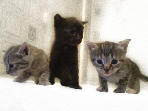 три котёнка, им вот-вот месяц будет на недельке! очаровашки, дымчатая в плоску-кошка, полосатик-кошка и черныш чбелым пятнышком под грудкой-кот. мама отличная крысоловка! писать в теме!